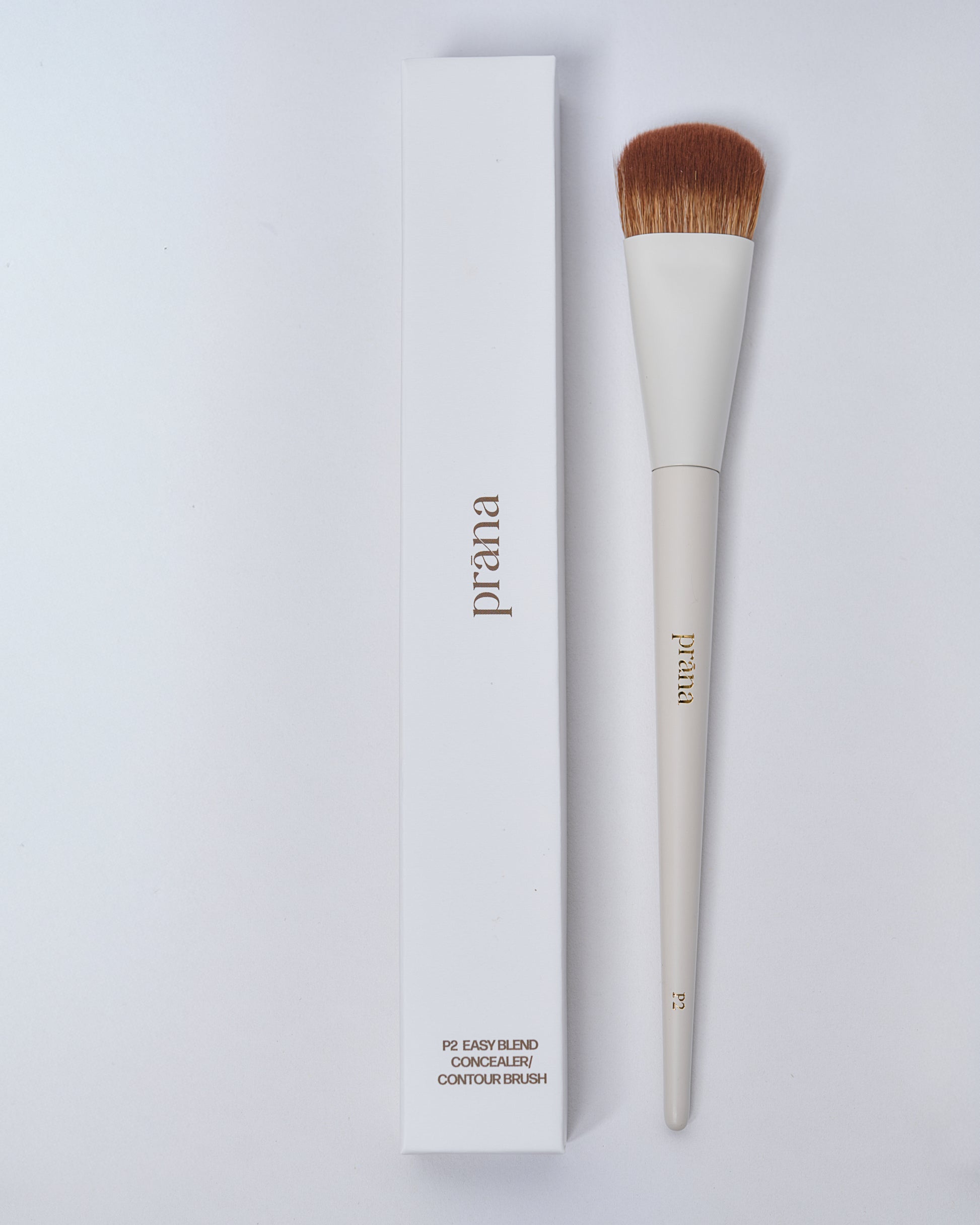 This vegan bristle P2 Easy Blend Concealer and Contour Brush is designed to easily blend cream products by effortlessly hugging the curves of your face for a flawless finish. Perfect for quick and easy application, this brush provides precise and seamless coverage, leaving you with a professional and polished look every time.